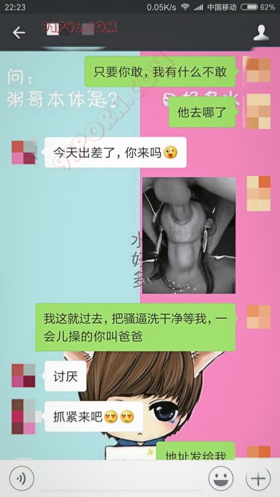 周末在家正准备睡觉,骚货发信息挑逗我,说她老公出差了,想让我去她家艹她,问我敢不敢,最终没能挡住诱惑,精虫上脑,冒死上门。骚逼穿着我送她的情趣内衣开门,进屋确认家里没人后,直奔主题。一摸下面早已湿的一塌糊涂,提枪上阵,全程无套,第一次要射的时候问她射哪里,她说危险期,射外面,无奈之举后入射她背上,洗洗躺在她主卧的大床上一边玩她奶子一边看电视。骚逼一会儿就让我摸得娇喘吁吁,提枪再战,由于刚射完,第二次时间比较长,她让我艹的死去活来,我借机再提内射,开始还拒绝,后来受不了了,求我快点射,想射哪射哪,我直接冲刺内射。骚货已经瘫软在床上,任由精液从小穴流出。缓过劲来随便冲了一下,两人相拥而眠。虽然她说老公出差了,但是在别人家过夜终归不踏实,天刚亮就醒了,本想就这样走了,看着怀里赤裸的女人,忍不住又硬了,直接插入骚逼,夜里内射后只是简单冲一下,里面还黏黏的,正好润滑了。艹到她叫爸爸求饶,不忍心再折磨她,最后让她给我口爆出来,喂了她一嘴早餐。我起床洗澡,她给我做早餐,吃完后担心有什么意外发生,就匆匆走了,我走后她出门买事后药自己吃了,对我一顿埋怨。