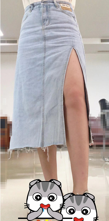 大开叉牛仔裙很性感